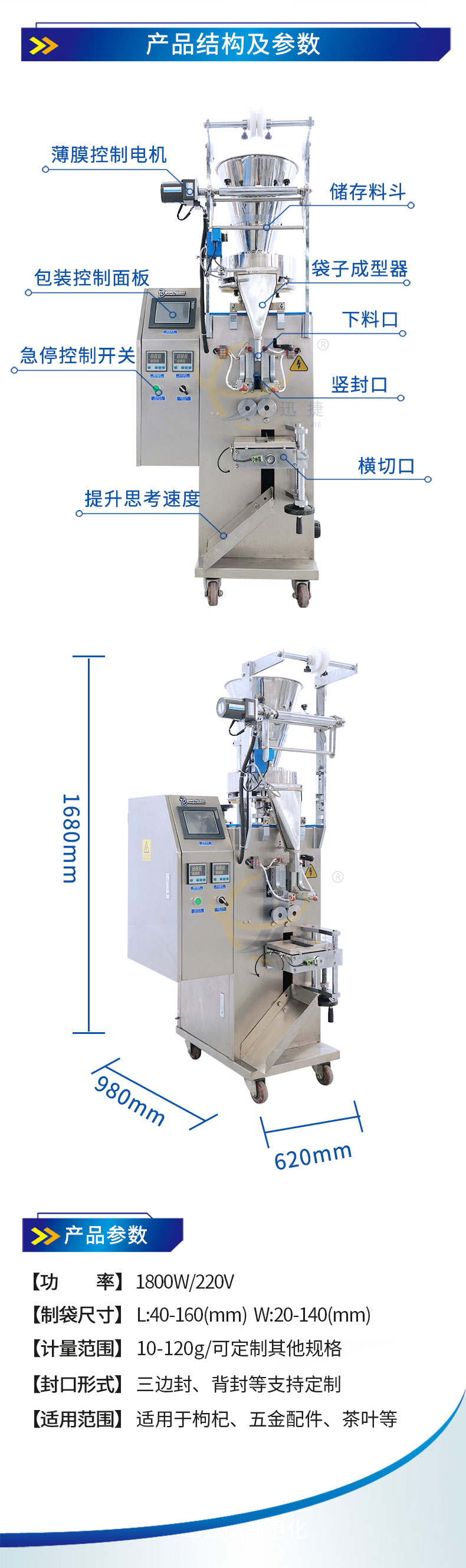 全自動(dòng)立式顆粒包裝機適用適合食品、化工產(chǎn)品中的圓狀和球狀物料的自動(dòng)包裝主。枸杞、五金配件、茶葉等包裝。