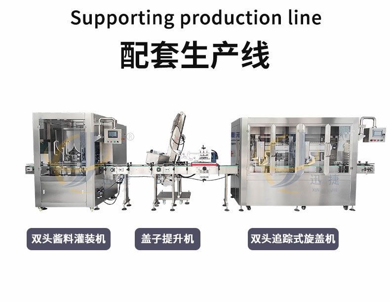 雙頭高速醬料灌裝機適用于調味品中帶顆粒并且濃度較大的辣椒醬、豆瓣醬、花生醬、香菇醬、果醬、牛油火鍋底料。
