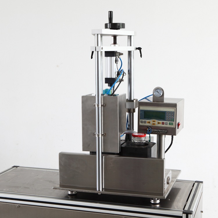 先從個(gè)詞半自動(dòng)來(lái)講,半自動(dòng)指的就是手動(dòng)與機器相結合的操作流程:半自動(dòng)玻璃瓶真空封口機是采用了人工上瓶,人工出瓶,機動(dòng)旋蓋與抽真空的方式來(lái)完成流程。由于人工上瓶,并且該半自動(dòng)玻璃瓶真空旋蓋機有無(wú)瓶不上蓋,無(wú)瓶不抽真空的特點(diǎn),所以大大減少了對瓶蓋與瓶身的損害。并且人工與機器的配合絲毫不浪費時(shí)間,比純手工的生產(chǎn)效率要幾倍,還更節省人力,一臺機器只需一個(gè)人便可輕松完成。