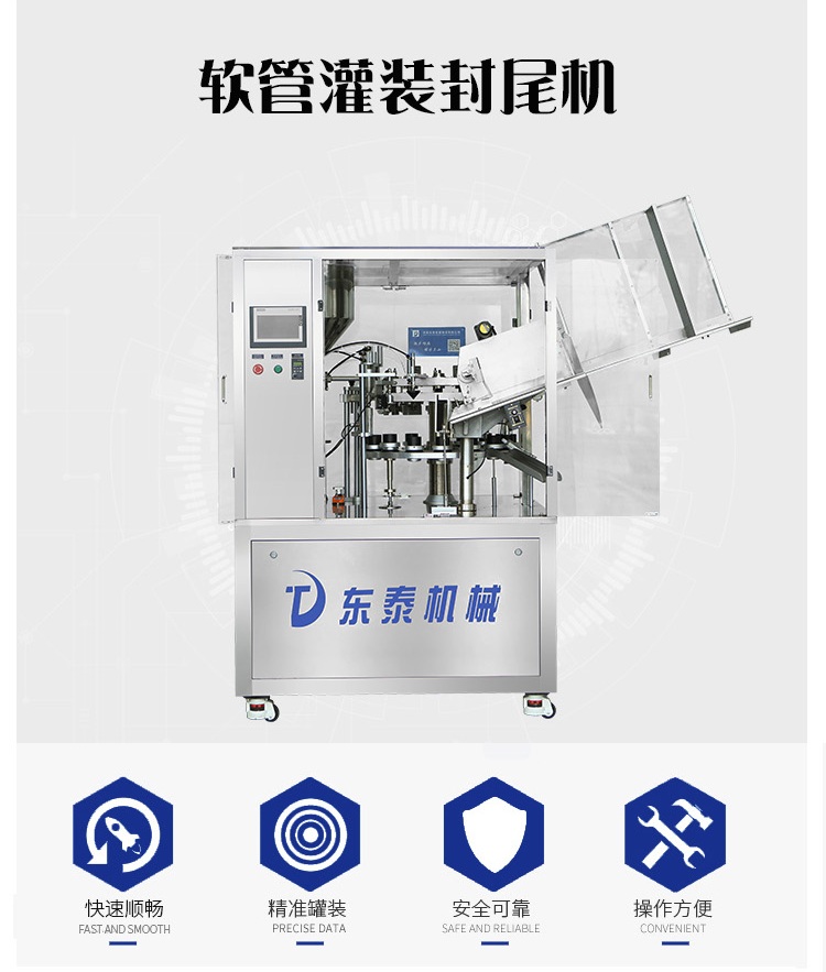 軟管灌裝封尾機適用于醫藥、食品、化妝品、日用化工用品等行業(yè)的塑管、鋁塑復合管灌裝封尾。軟管灌裝封尾機可將各種糊狀