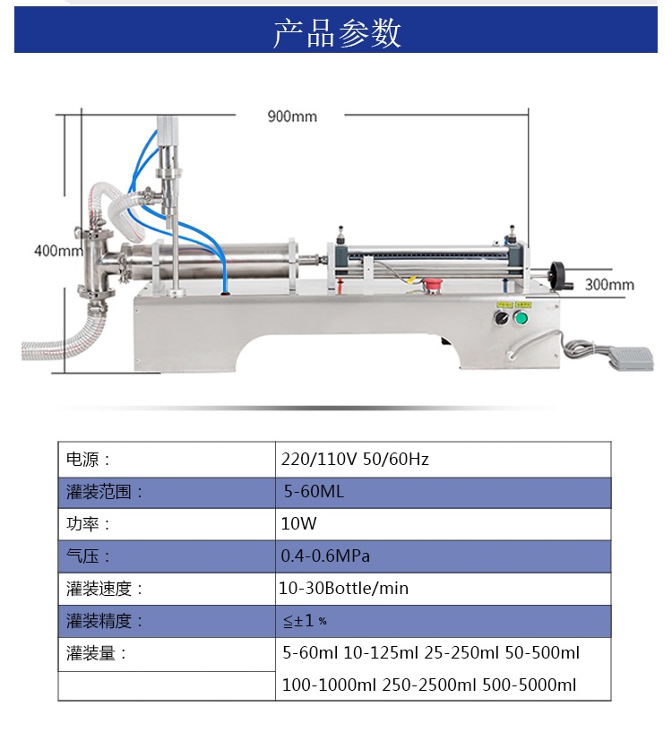 產(chǎn)品名稱(chēng):小型半自動(dòng)單頭液體灌裝機